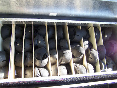 Organizing bins make it easy to inventory boot stock at a glance. This aluminum tool box with simple plywood dividers stores every size of Easyboot Glue-on and Glove. Similar bins in Pete’s truck are used for epoxies, casting material, pads, Rx boots, and draft-sized Epics.