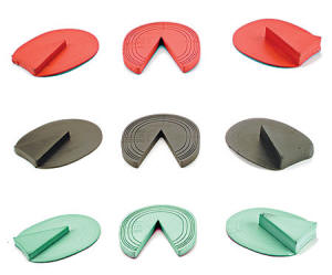 Since the writing of this article, Easycare has produced an excellent line of pads to make life easier for the professional. Each color is a different density and they can be combined to add or reduce frog pressure and solar support/stimulation. You can find them at www.easycareinc.com
