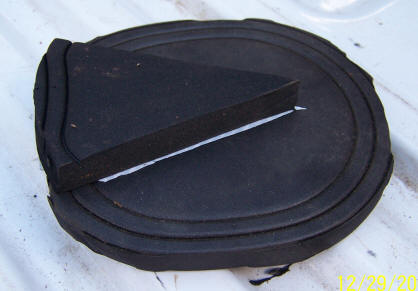 Sometimes the foam insole alone will do the trick. If the heels are contracted and the frog is deeply recessed between the heels, you may need to build more material under the frog. I usually use the softer neoprene saddle pads for this, but sometimes the denser insole material is right. You just have to ask the horse – experiment. I use two methods for this, depending on the situation. Sometimes I cut the owner a bunch of frog shaped pads. They then put the frog pad over the frog, tape it in place with one piece of duct tape, then put it in the boot.
