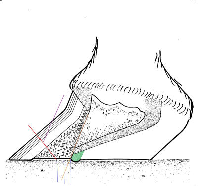 1/8” (3mm) of hoof wall to bear active ground pressure (blue