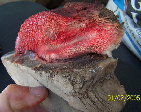 Fig. 4) Partially dissected feral cadaver with sole and frog corium, P3 and lateral cartilages left intact.