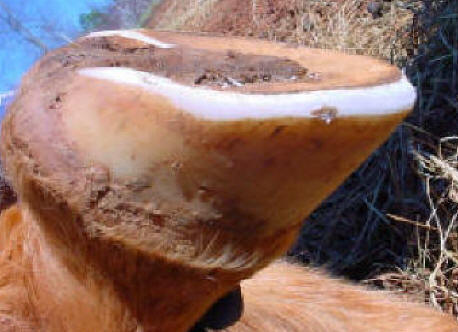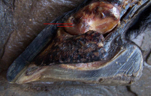 notice that the inner proximal corner of the hoof wall is in the exact