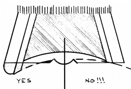 the hairline should be level with or even distal to the top