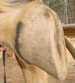 Humans created the heavy draft horse through selective breeding. We didn't manage to scale everything up proportionately, though. While overgrown walls can usually lift the soles and frogs off the ground in a light horse, they are rarely proportionately strong enough in a draft. Instead the walls flare, split and break away. Believe it or not, in a way, this actually works to the draft horse's advantage. With the soles and frogs thus on the ground throughout life, it is rare to find a draft horse with inadequate development and sensitive structures in the back of the foot. Because of this, we almost always can pull the shoes, start a competent natural trimming program and the horse will comfortably keep on working. (If not, we use hoof boots for work while we wait for the inner structures to develop. I usually use the Easyboot Epics; available up to size #7s)