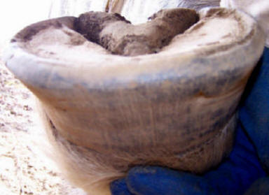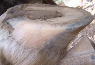 In domestication, we tend to provide for our horses' every need. They don't have to travel very much. We also tend to keep horses in soft terrain, which limits the hooves' development. We tend to neglect foal hooves, allowing the frogs to be lifted off the ground by excess wall length. This means that most of our horses reach adult weight with "baby feet" that haven't developed enough internally to do their intended job. Many of our domestic horses reach adulthood (and die of old age) with digital cushions that are still mostly comprised of fat and lateral cartilages that are 1/8-inch thick. The result is sensitivity and short-strided, stiff movement. This leaves us with two choices. We can cover it all up with iron shoes, robbing the horse of much of its natural ability to dissipate energy; or we can develop the natural structures within the feet. This is important. Most horsemen think "we've bred the feet off our horses," when in fact we can usually make almost any hoof healthy when changes are made to the lifestyle and care. It's easier to blame a horse for having bad feet - usually more accurate, though, to blame ourselves.