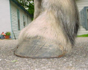Front left foot of an 1800 lb. Percheron working every day as a guide horse for a trail riding outfit in rugged mountain terrain.