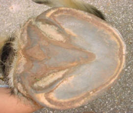 Recent research from Michigan State University (Dr. Robert Bowker) confirms what many insightful farriers have suspected all along. The hoof walls were never intended to bear all the horse's weight. The soles, frogs and bars are supposed to share in the load, with the primary initial impact force received by the frog. This is why draft hooves seem so easily ripped apart; most people are trying to force the walls into a primary support role nature never intended. Wall flares, chips and splits are easily grown out when the wall is not forced to bear the horse alone.