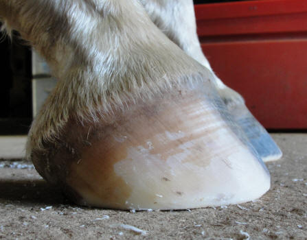 Other than that, treat each hoof as an individual, and don't try to force them to match. Just try to grow out wall flares and encourage thick soles and frogs. Work the feet into balance subtly, nudging them in the right direction at each trim. If the rest of the training program is encouraging balanced development, the hooves will become more balanced over time as well.