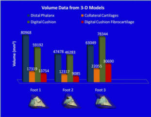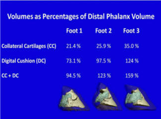 [Fig 9 above] Note that while foot 1 has a greater distal phalanx (P3) volume,