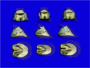 [Fig 7 above] Three dimensional computer reconstruction images of each of the three feet.