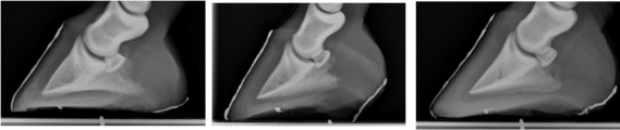 [Fig 5] Radiographs of the same 3 feet pictured above, revealing differing palmar angles, sole depths,