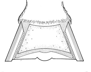 hoof, the sole material in the bottom of the groove rarely varies in thickness.