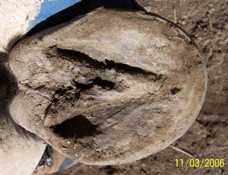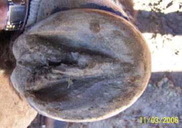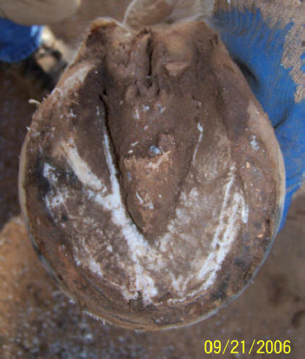 but callused off at the level of the sole – this horse had immediately and