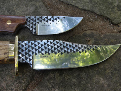 I started giving my old rasps to one of my customers. Check out the beautiful knives he's making out of them. The diamond pattern is left after grinding away most of the rasp teeth. Get one of your own by emailing him at wfechols@gmail.com